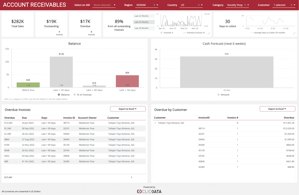 This dashboard provides real-time data on a company’s accounts receivable, which includes all outstanding invoices that are owed to the company by its customers. By monitoring key metrics such as the average time to collect payments, the percentage of overdue [...]
