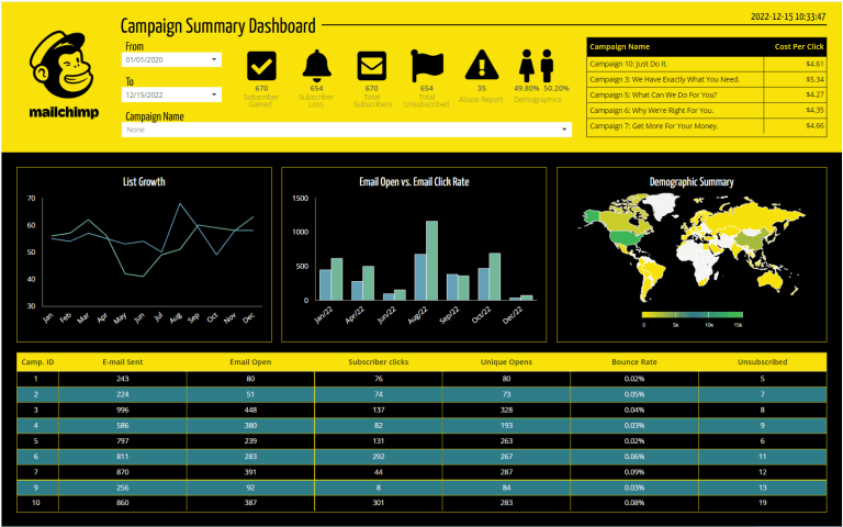 Estos son algunos de los cuadros de mando de muestra que pueden construirse utilizando esta fuente de datos.