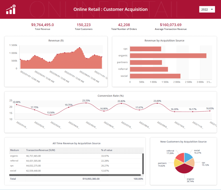 Estos son algunos de los cuadros de mando de muestra que pueden construirse utilizando esta fuente de datos.