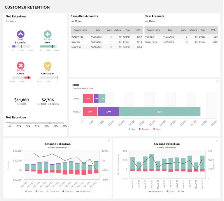 - KPI de retención de clientes creados a partir de registros de inicio de sesión, suscripción y uso.