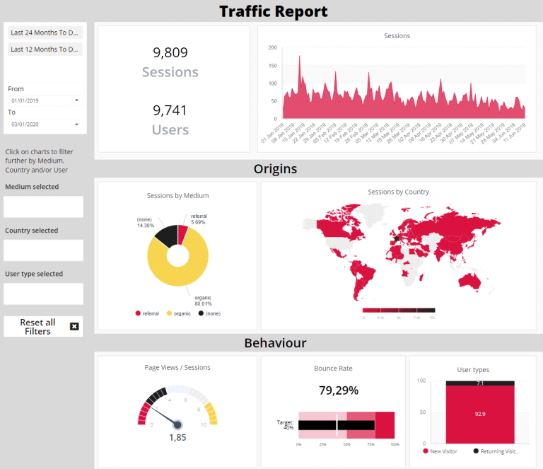 Questi sono alcuni esempi di dashboard che possono essere costruiti utilizzando questa fonte di dati.